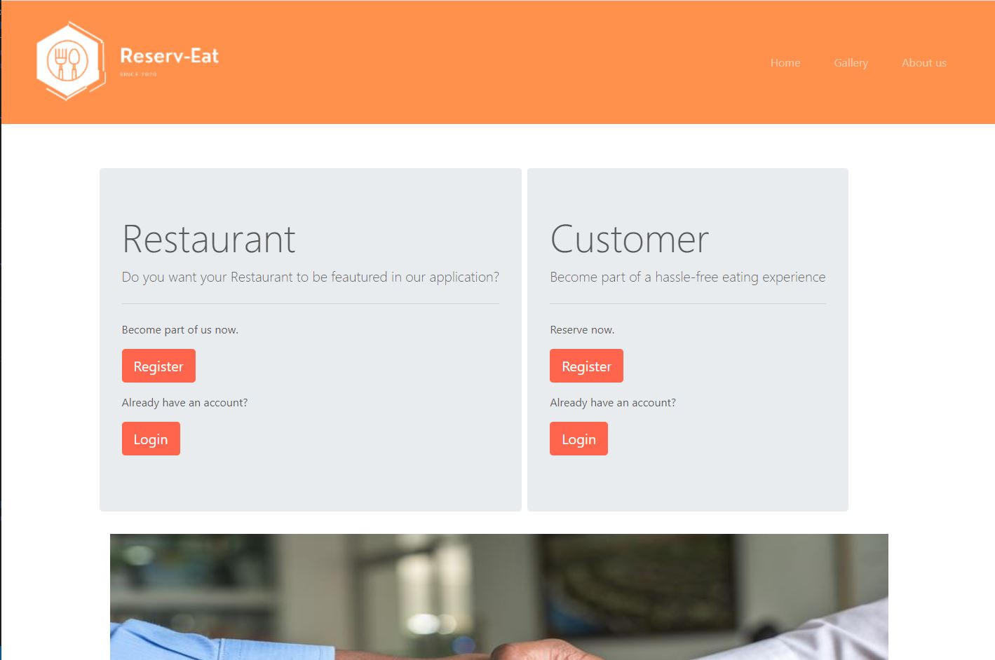 Reserv-eat is a website developed by the thesis group composed of Charles Abuzo, Angelo Marana, Kirk Plata, and Angelo Te. The group proposed Reserv-Eat, a convenient, safe, and contact-free mobile application for dine-in restaurants. This application allows users to book a reservation ahead of time. It also has features such as a digital menu, and a directory of restaurants near the user. The application will be programmed using the PHP Programming language while using My SQL for our Database for our Web Application where the customer can see the menu of the restaurant and the Mobile application will be programmed using Kotlin where customers can reserve in a specific restaurant. They are allowed to use the Web Application to Book and see the Digital Menu.